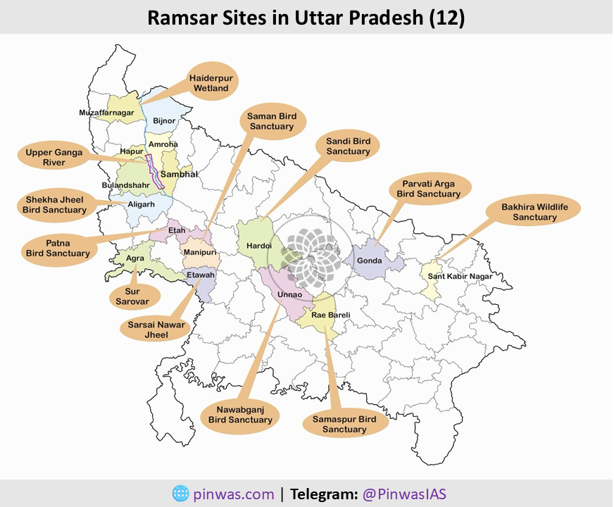 | 11 Ramsar sites | Uttar Pradesh | ~ 37600 | UP has 2nd highest No. of Ramsar sites after Tamil Nadu |